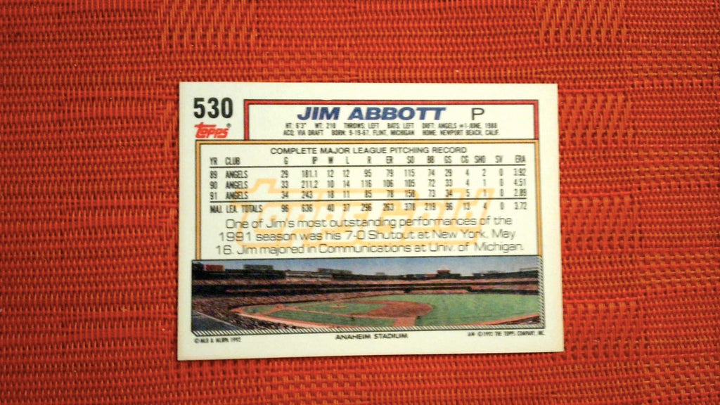 1992 Topps Gold Winners #530 Jim Abbott Baseball