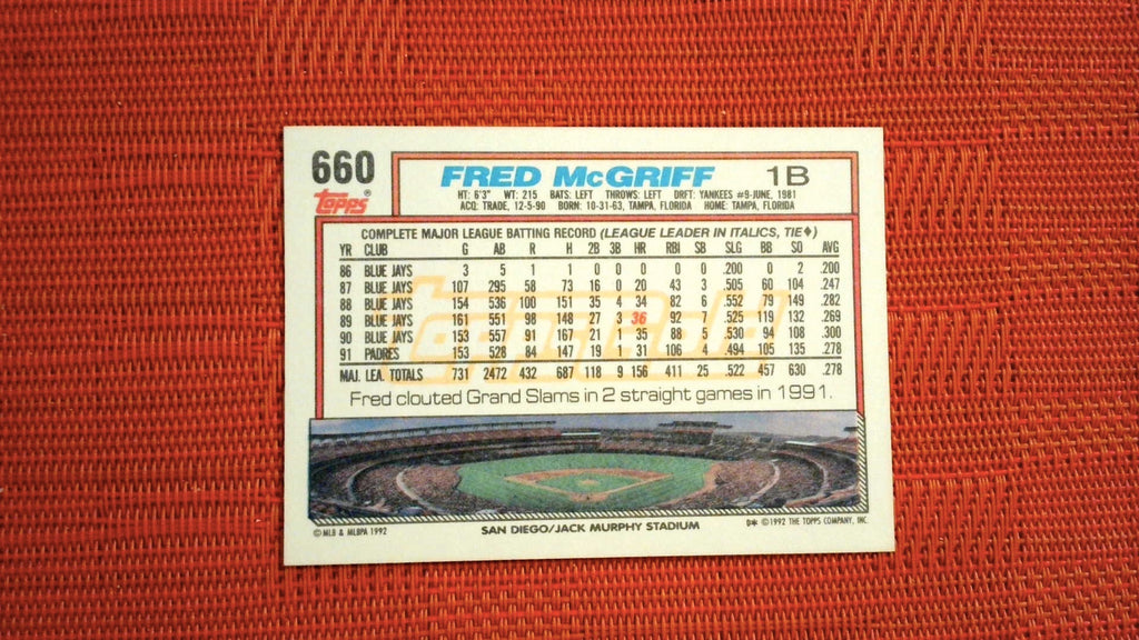 1992 Topps Gold Winners #660 Fred McGriff Baseball