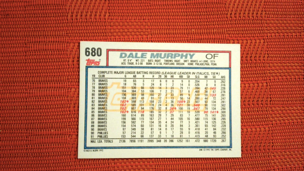 1992 Topps Gold Winners #680 Dale Murphy Baseball
