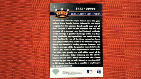 1992 Upper Deck Insert #TC1 Barry Bonds Triple Crown Contenders Baseball
