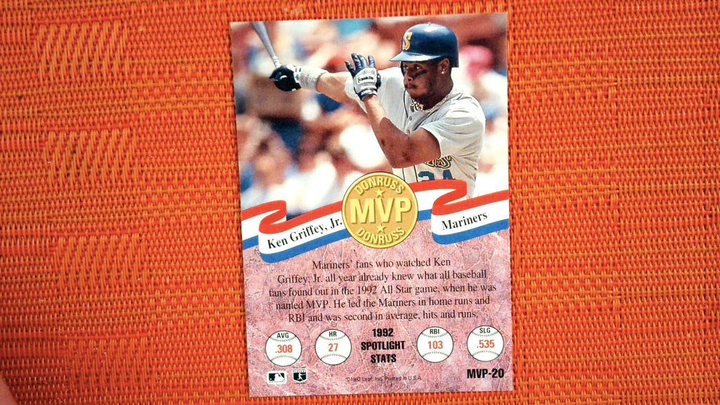 This is a nice example of a 1993 Donruss #MVP-20 Ken Griffey Jr. MVPs.