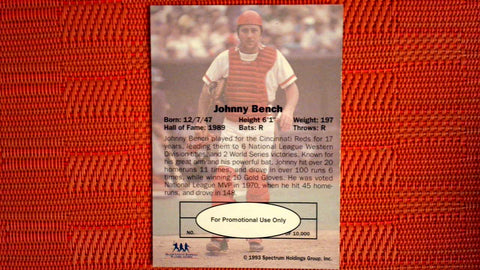 1993 Spectrum Holdings Diamond Club Promo # Johnny Bench