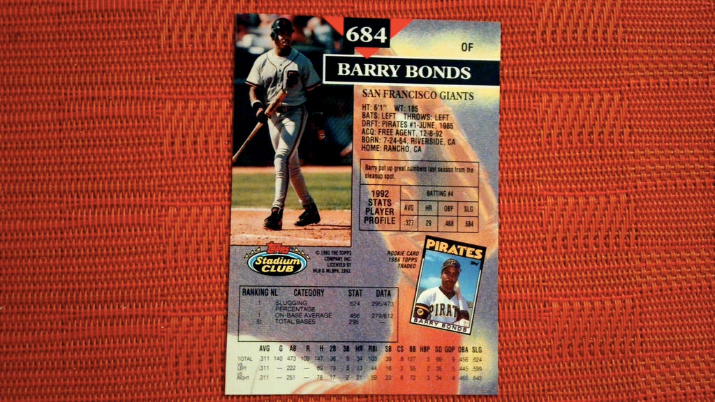 1993 Topps Stadium Club #684 Barry Bonds Baseball