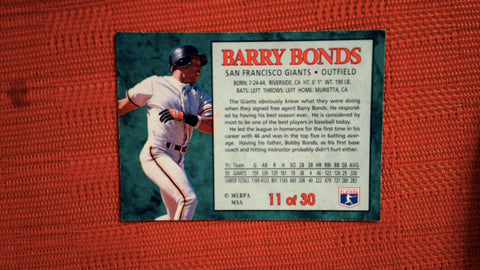 This is a nice example of a 1994 Post Cereal #11 Barry Bonds .