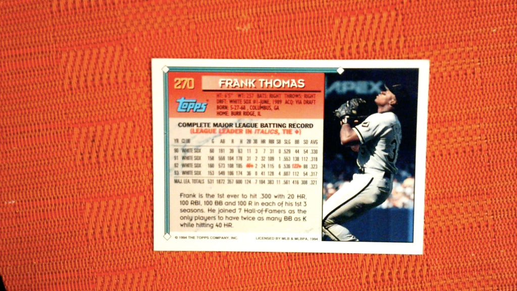 This is a nice example of a 1994 Topps #270 Frank Thomas Gold.