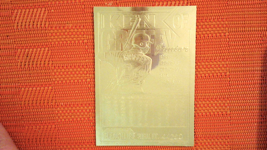 This is a nice example of a 1996 Bleachers 23 Karat Gold Foil Sculptured #NNO Ken Griffey Jr. .