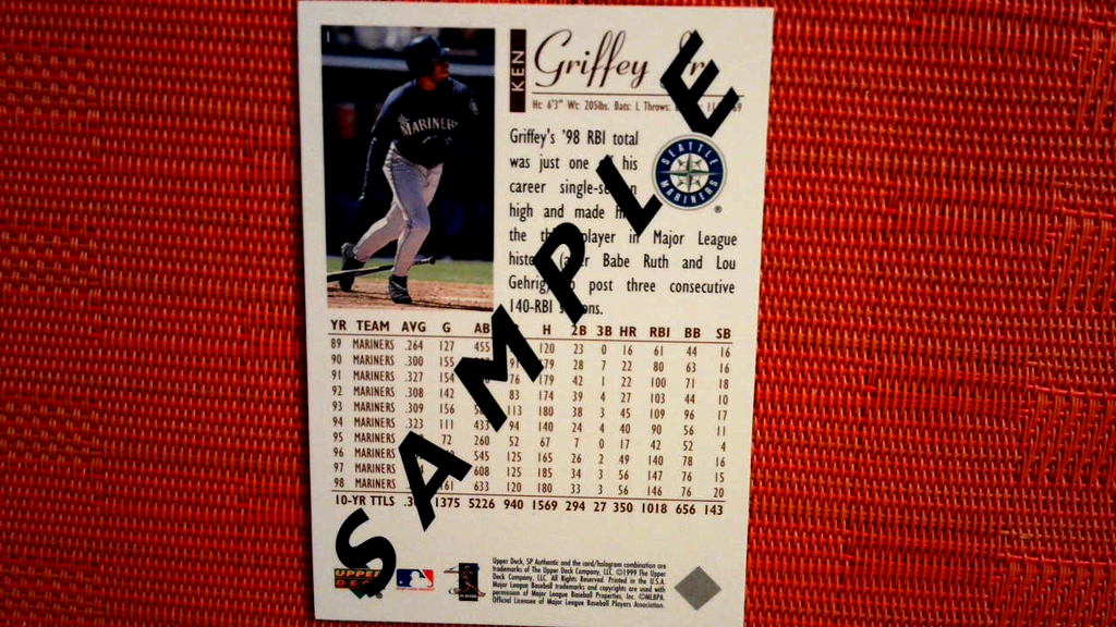 1999 UD - SP Authentic - KEN GRIFFEY JR - Sample Card - #1 - Seattle Mariners