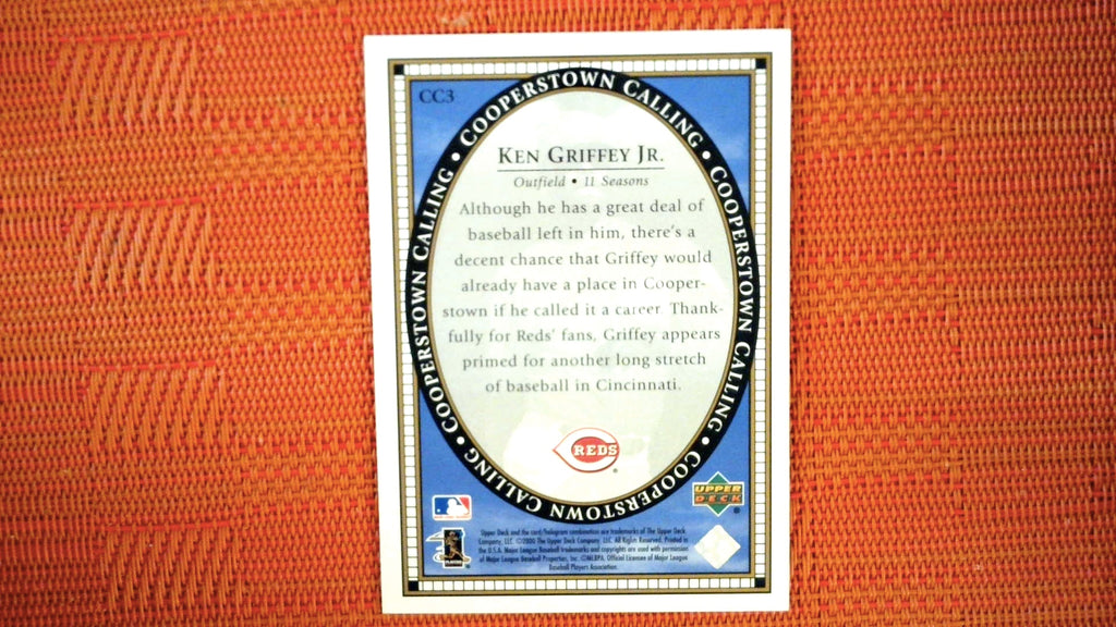 This is a nice example of a 2000 Upper Deck #CC3 Ken Griffey Jr. Cooperstown Calling.
