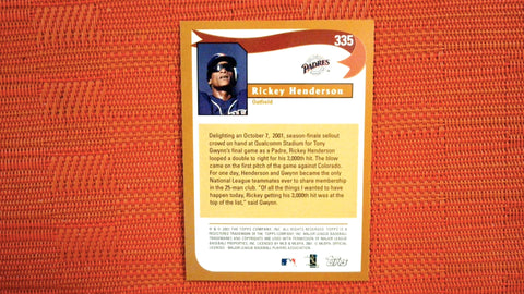 This is a nice example of a 2002 Topps #335 Rickey Henderson .