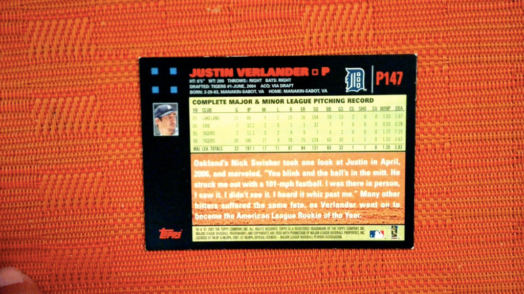 This is a nice example of a 2007 Topps Pepsi #P147 Justin Verlander .
