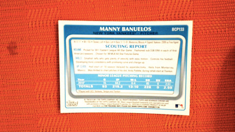 This is a nice example of a 2011 Bowman Chrome #BCP133 Manny Banuelos Prospects.