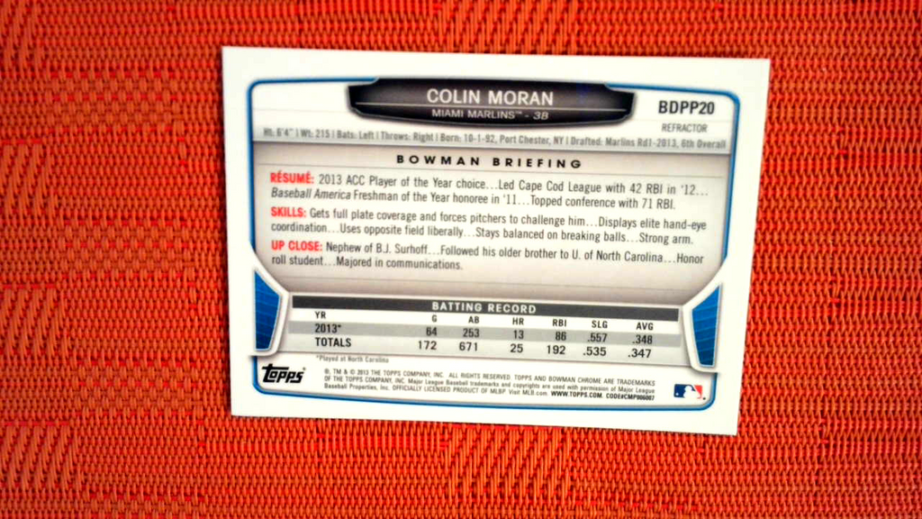 2013 Bowman Chrome Draft Picks Colin Moran REFRACTOR Rookie RC - 1st Card