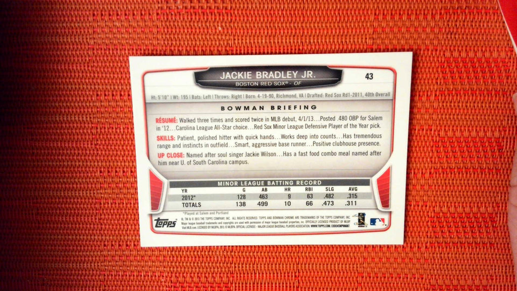 2013 Bowman Chrome Jackie Bradley Jr #43 ROOKIE CARD-Red Sox