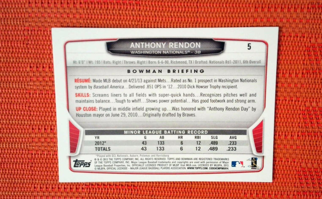 2013 Bowman Draft Anthony Rendon Rookie Card. Card #5
