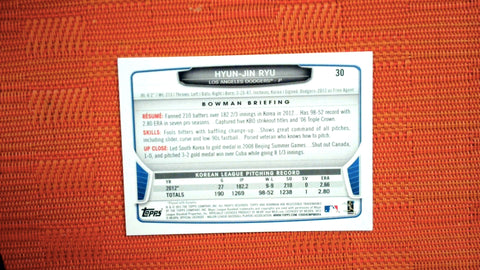 This is a nice example of a 2013 Bowman Draft Picks & Prospects #30 Hyun-Jin Ryu .