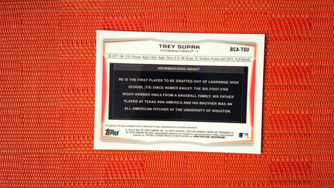 2014 Bowman Chrome Baseball Card #BCA-TSU Trey Supak Autograph