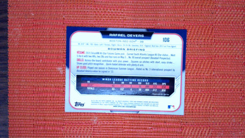 This is a nice example of a 2015 Bowman Draft #106 Rafael Devers Chrome.