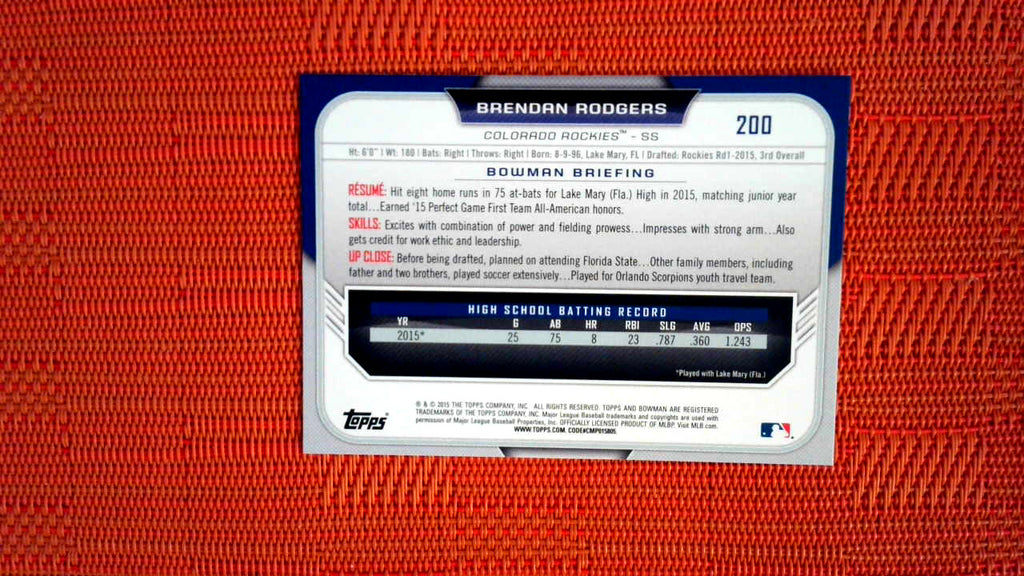 2015 Bowman Draft #200 Brendan Rodgers-1st Bowman