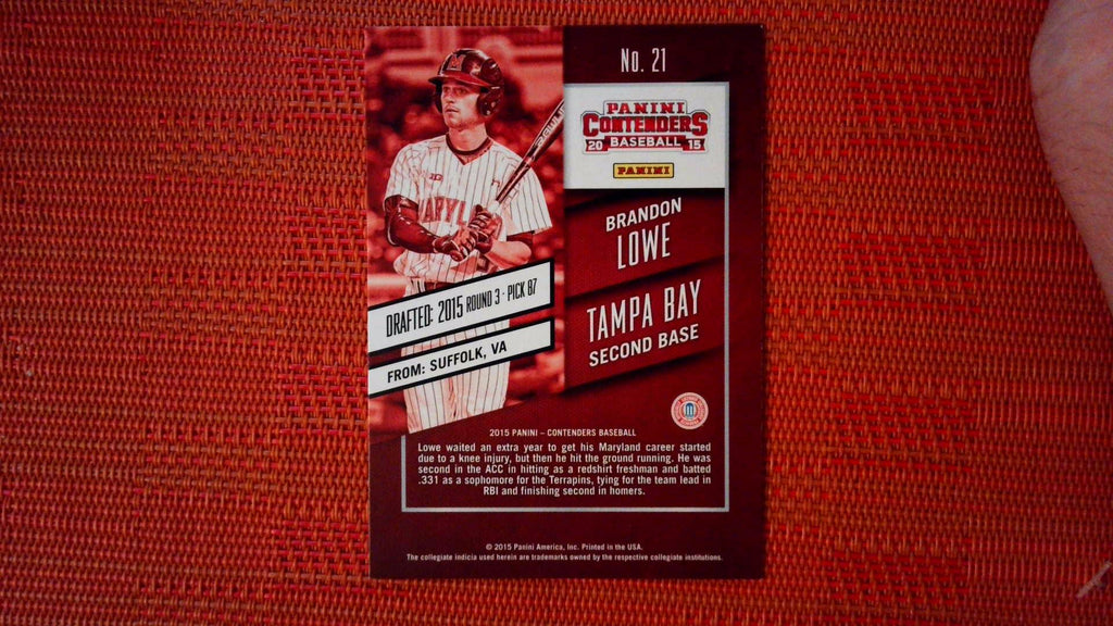 2015 PANINI CONTENDERS BRANDON LOWE #21 TAMPA BAY RAYS