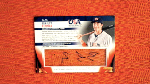2015 Panini USA Stars and Stripes Baseball Stars and Stripes Signatures Set #15 Bradley Zimmer 18/99- Toronto Blue Jays