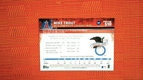 This is a nice example of a 2015 Topps #510 Mike Trout .