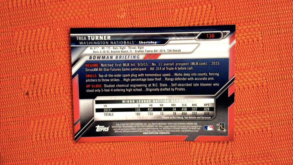 This is a nice example of a 2016 Bowman #130 Trea Turner .