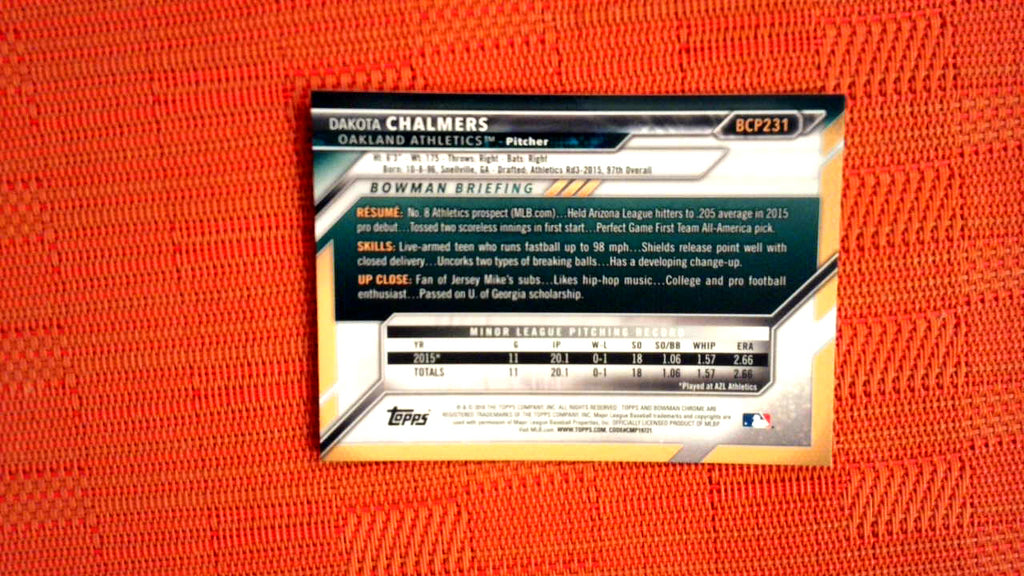 2016 Bowman Chrome #BCP231 Dakota Chalmers-1st Bowman