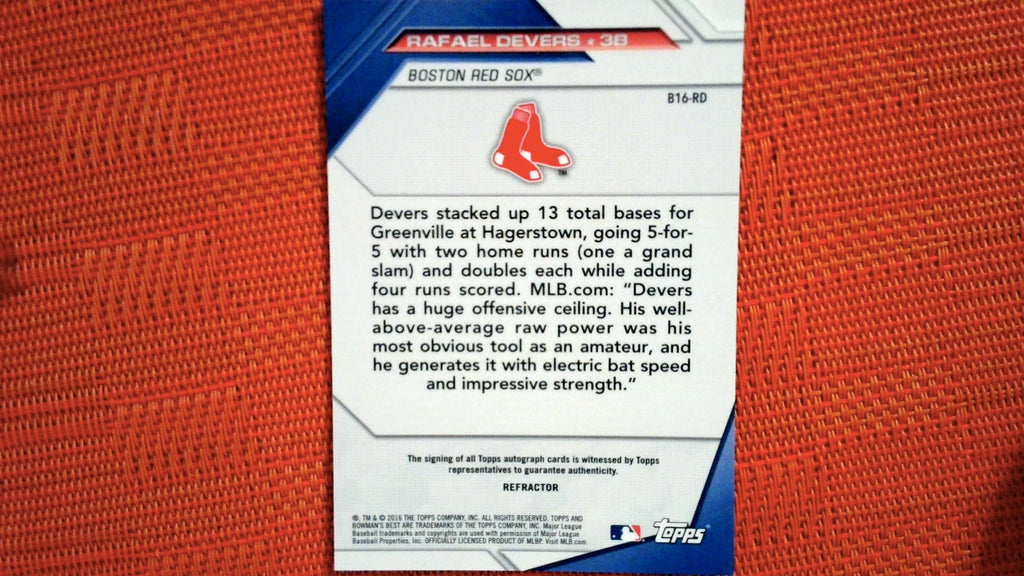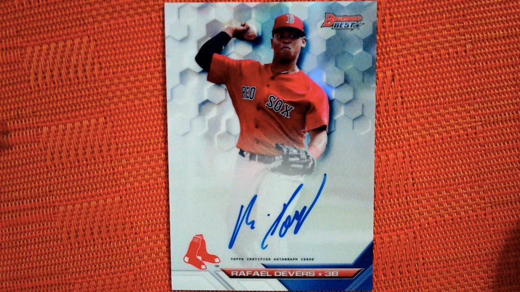 This is a nice example of a 2016 Bowman's Best #B16-RD Rafael Devers Best of 2016 Autographs Refractor.