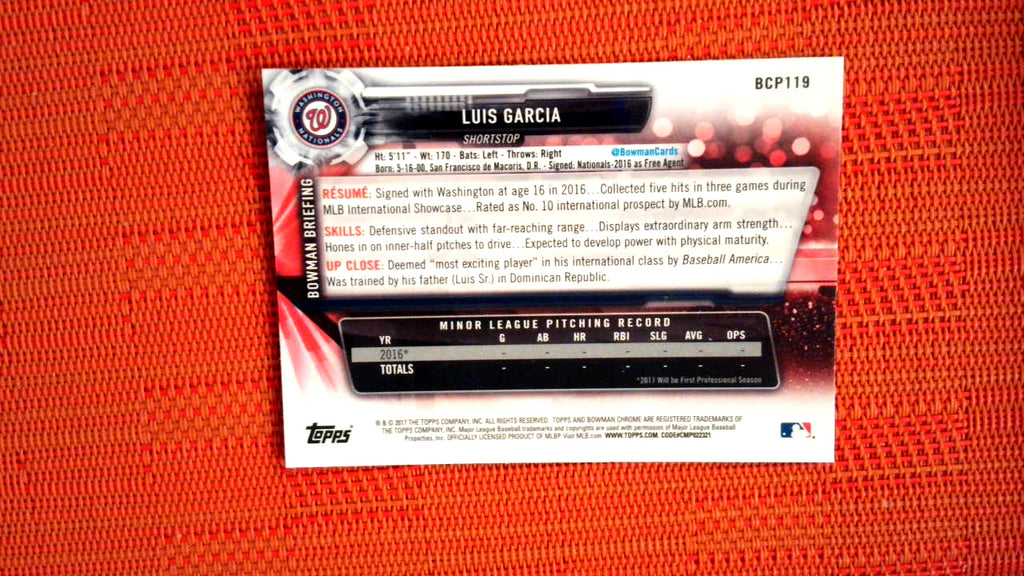 2017 Bowman Chrome #BCP-119 Luis Garcia-1st Bowman