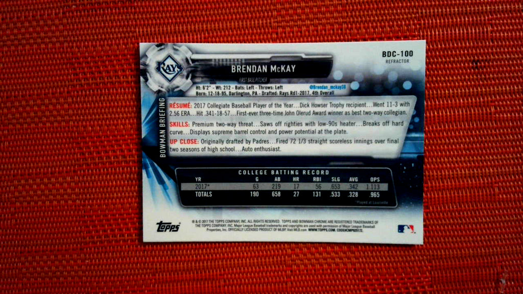 2017 Bowman Draft Chrome Refractor #BDC-100 Brendan McKay-1st Bowman