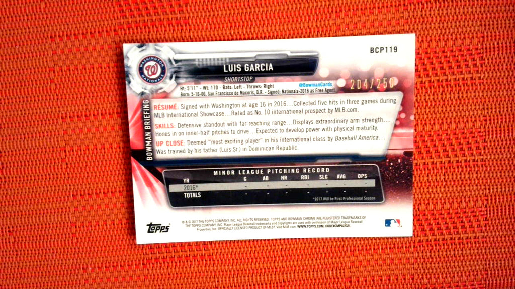 2017 Bowman Purple 204/250 #BCP119 Luis Garcia-1st Bowman