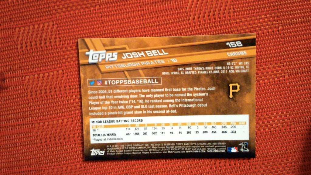 This is a nice example of a 2017 Topps Chrome #158 Josh Bell .