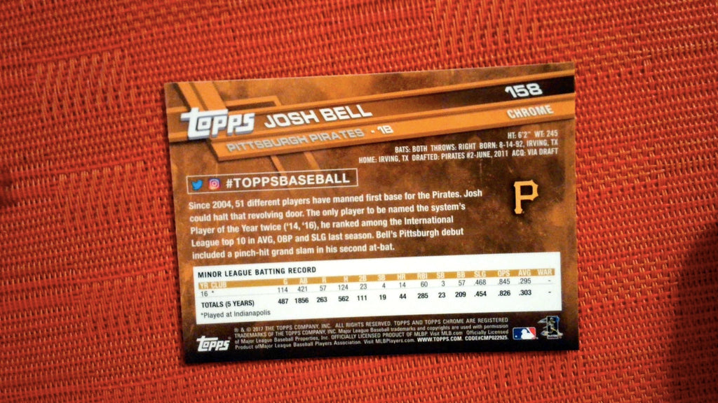 This is a nice example of a 2017 Topps Chrome #158 Josh Bell Prism Refractor.