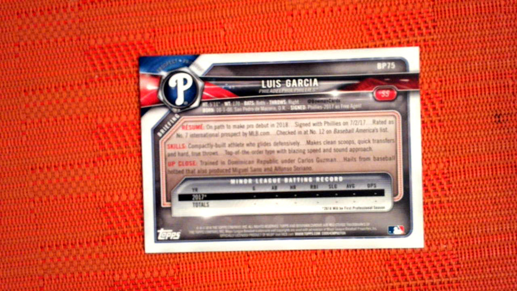 2018 Bowman Base #BP75 Luis Garcia-1st Bowman