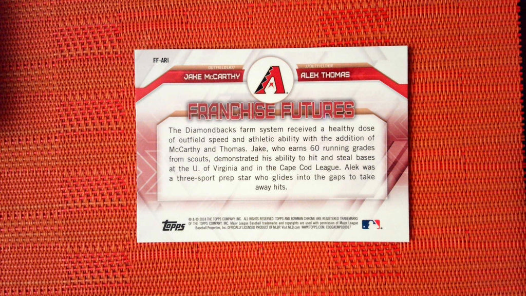 2018 BOWMAN CHROME DRAFT JAKE MCCARTHY ALEK THOMAS FRANCHISE FUTURES #FF-ARI
