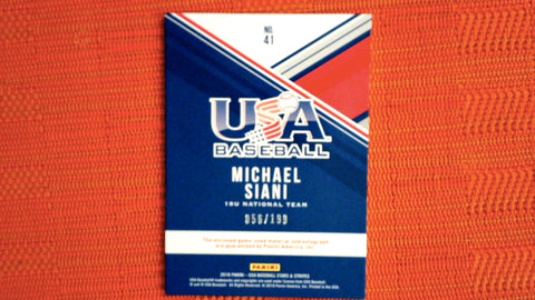 2018 Panini Stars & Stripes USA Baseball USA National Team Silhouettes Signatures Jerseys #41 Michael Siani 056/199 -Cincinnati Reds