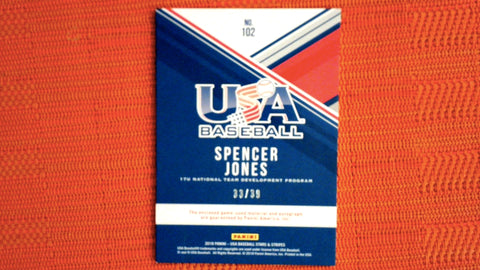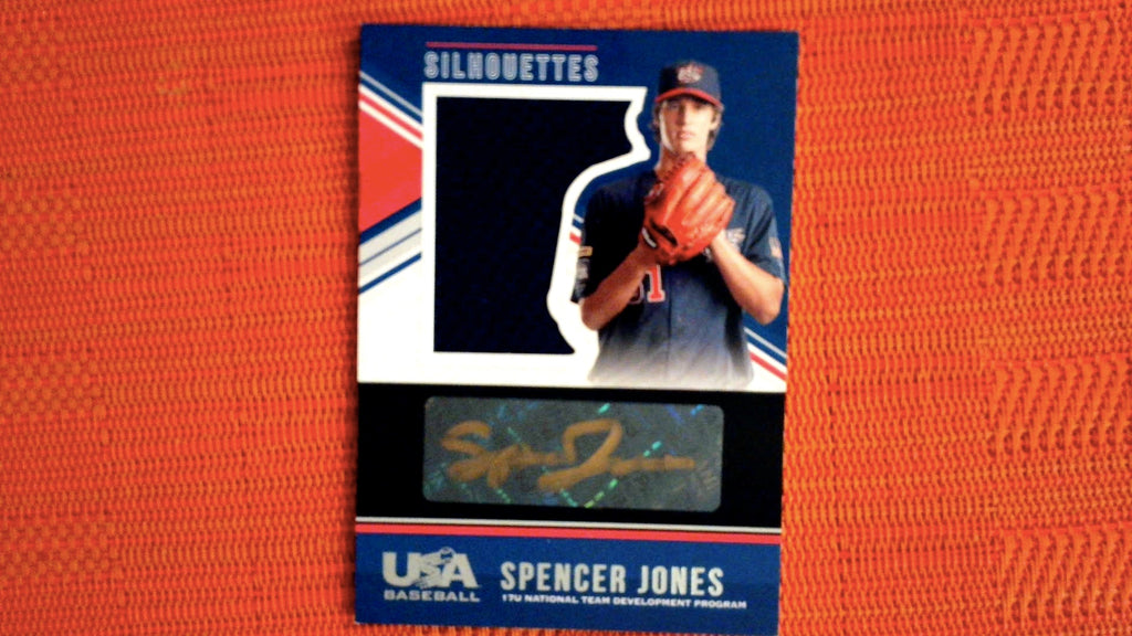 2018 Panini Stars & Stripes USA Baseball USA National Team Silhouettes Signatures Jerseys Black Gold #102 Spencer Jones 33/39 - New York Yankees