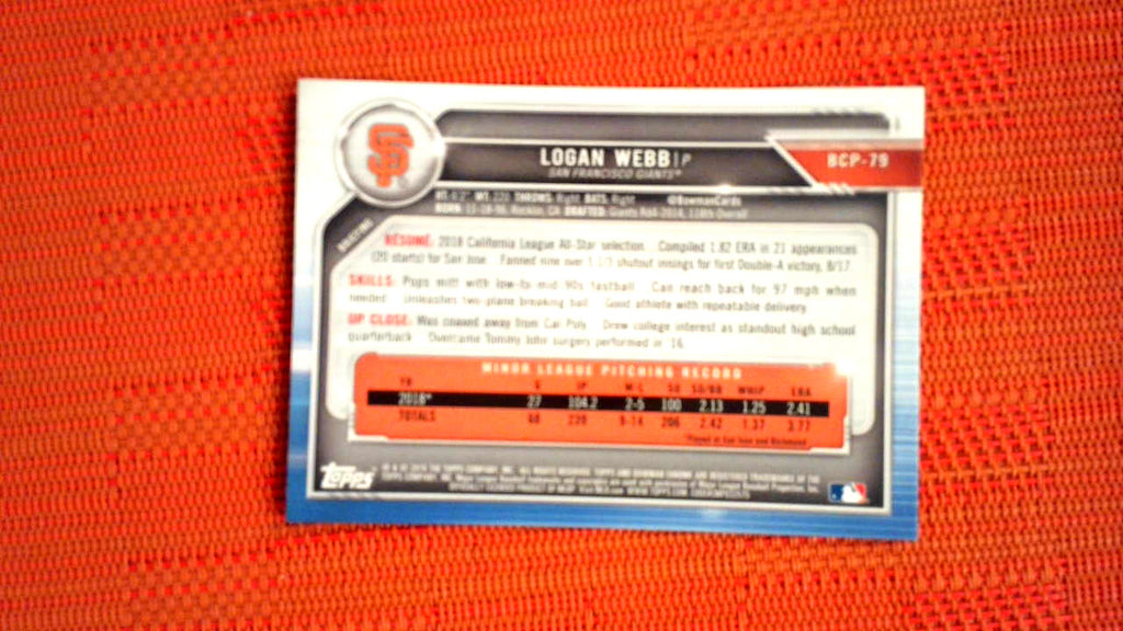 2019 Bowman Chrome #BCP-79 Logan Webb-1st Bowman