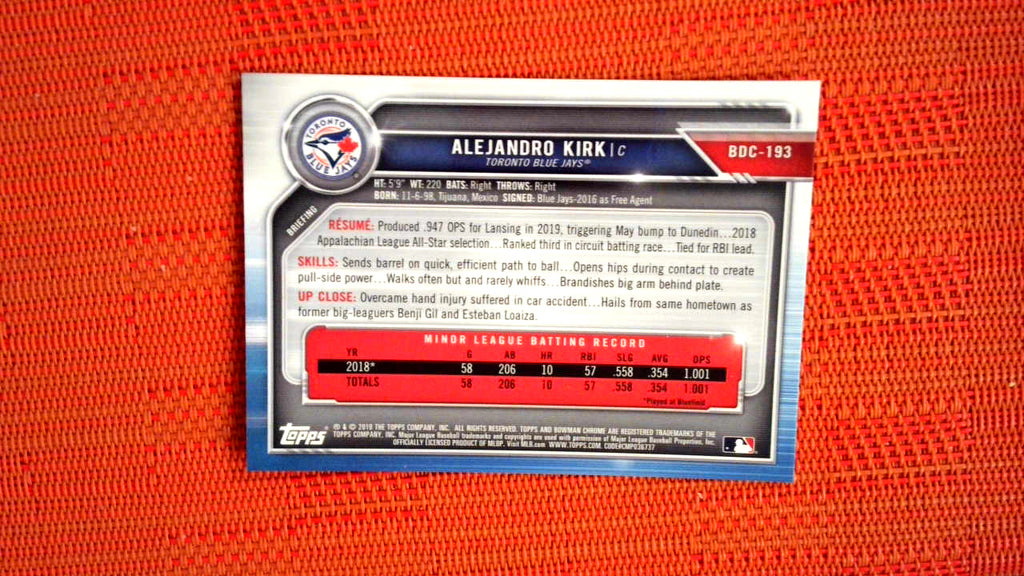2019 Bowman Draft Chrome #BDC-193 Alejandro Kirk