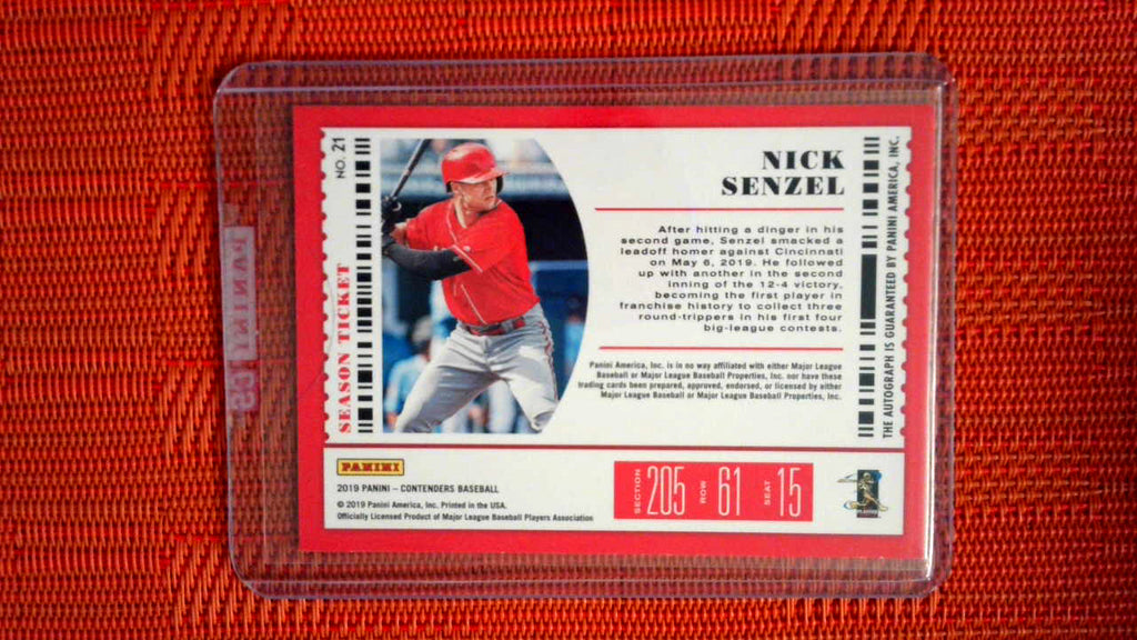 2019 Panini Chronicals Baseball Contenders Season Ticket Autograph 44/99 #21 Nick Senzel - Rookie