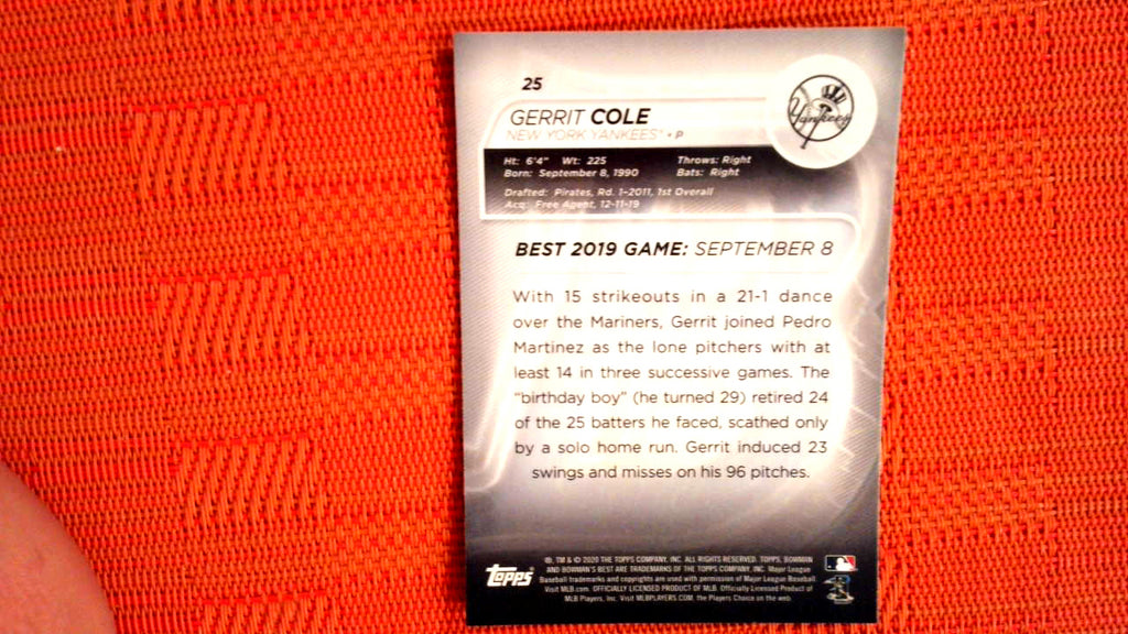 2020 Bowman's Best #25 Gerritt Cole