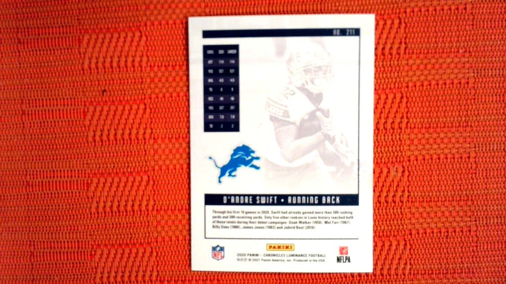 2020 Panini Chronicles Football Luminance - Teal Parallel #211 D'Andre Swift- Rookie