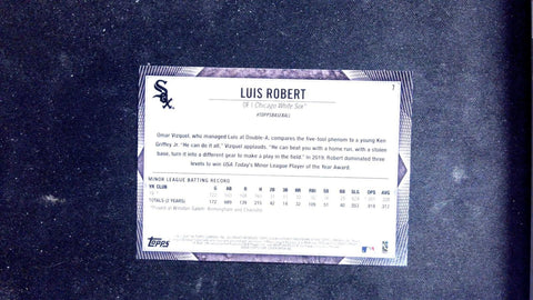 This is a nice example of a 2020 Topps National Baseball Card Day #7 Luis Robert . The card is right out of the pack. We will combine shipping. Sales tax is applied to Maryland residents. Free shipping orders less than $20 will be shipped PWE.Other important information about this card: In 2020 Luis Robert played for the Chicago White Sox.Please check out our other listings for more great cards.