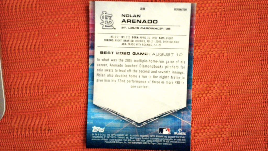 2021 Bowman's Best Refractor #38 Nolan Arenado