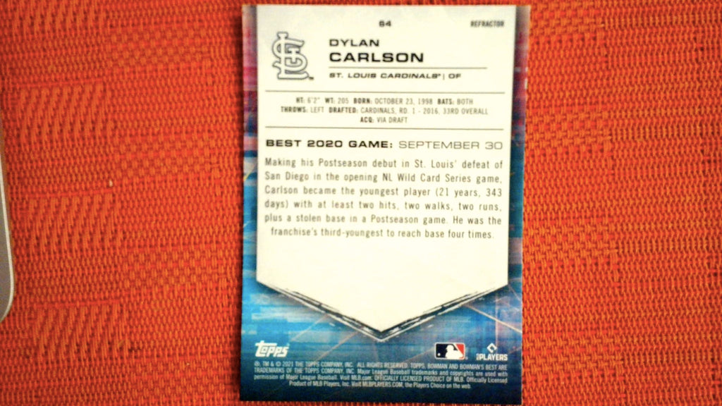 2021 Bowman's Best Refractor #64 Dylan Carlson Rookie