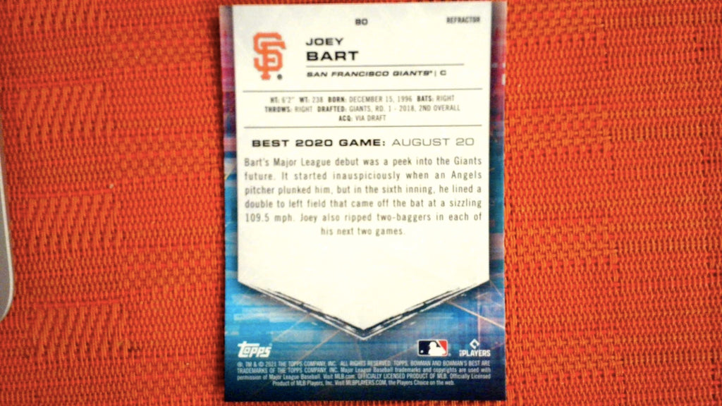 2021 Bowman's Best Refractor #80 Joey Bart Rookie
