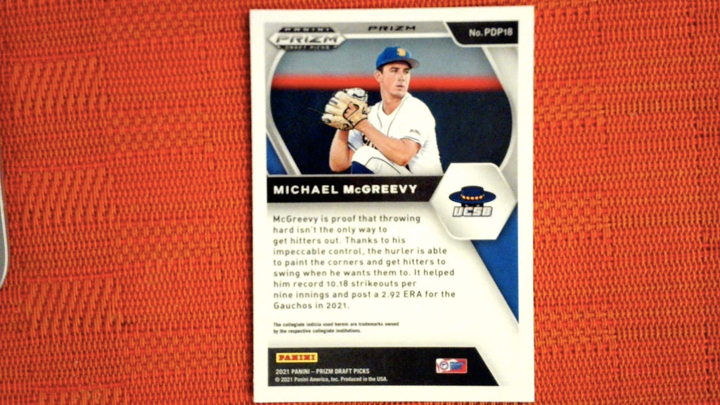 2021 Panini Prizm Draft Picks Baseball Red Wave Prizm #PDP18 Michael McGreevy