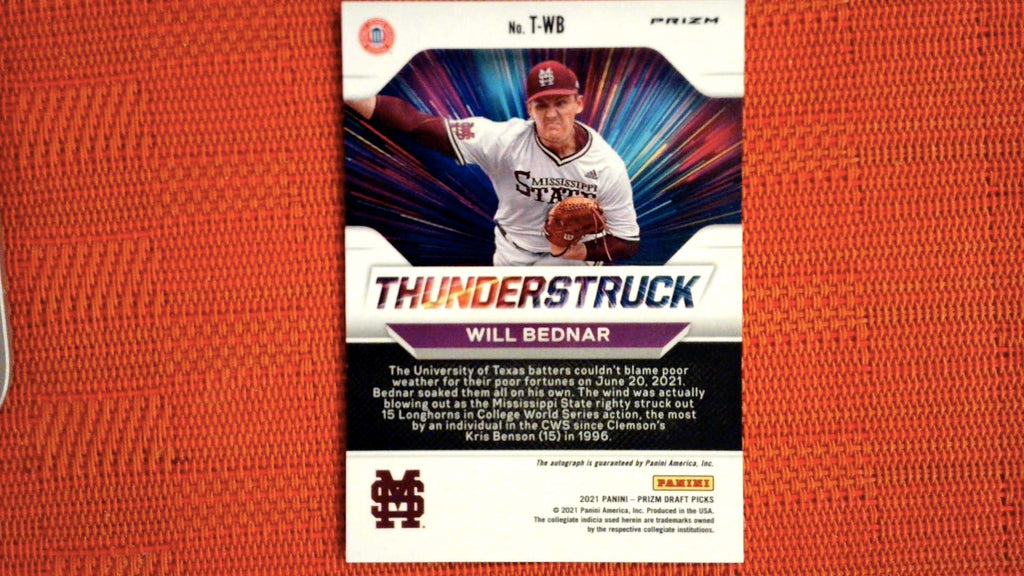 2021 Panini Prizm Draft Picks Baseball Thunderstruck Autograph Silver Prizm #T-WB Will Bednar