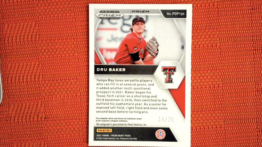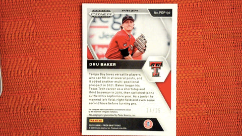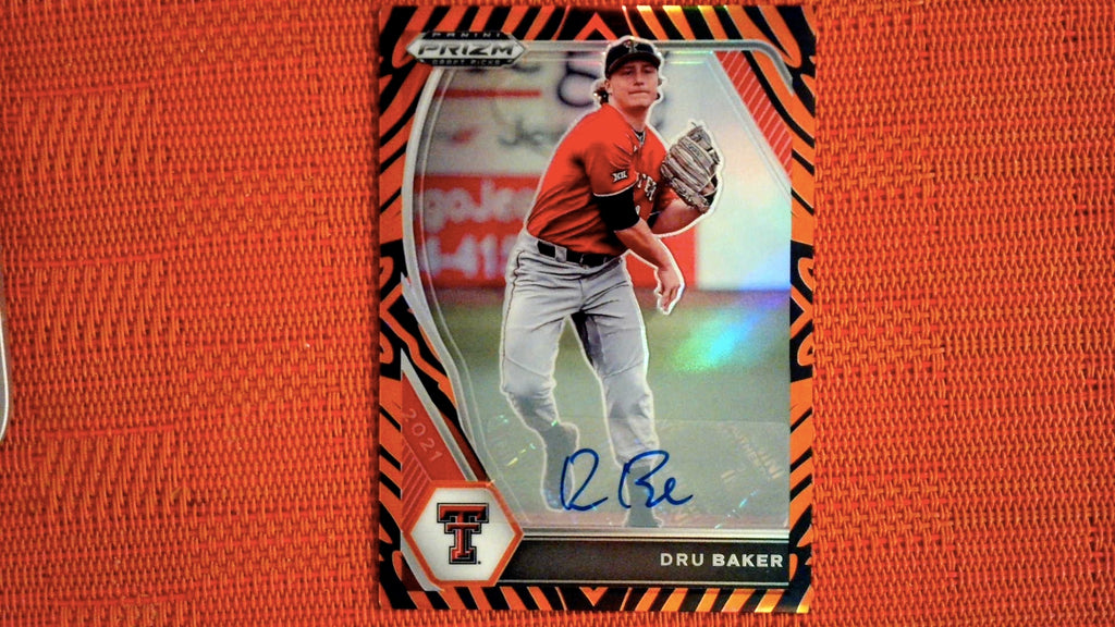 2021 Panini Prizm Draft Picks Baseball Tiger Stripes Autograph Silver Prizm #PDP130 Dru Baker 14/25