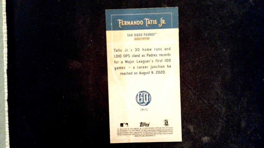This is a nice example of a 2021 Topps Gypsy Queen #CM-FTJ Fernando Tatis Jr. Captains Minis. The card is right out of the pack. We will combine shipping. Sales tax is applied to Maryland residents. Free shipping orders less than $20 will be shipped PWE.Other important information about this card: In 2021 Fernando Tatis Jr. played for the San Diego Padres.Please check out our other listings for more great cards.